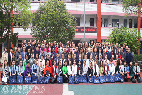 本网讯 4月7日至9日,校“国培办”组织省内外一线教学名师和高校专家共计21余人奔赴黔东南州锦屏县开展“国培计划(2016)”-名师送教下乡项目第一阶段的培训工作。7日上午YABO鸭脖官网继续教育学院副院长王先华、锦屏县教育局局长龙景植、副局长潘兴华,中小学语文、数学、英语学科专家团队分别出席在锦屏县民族中学、县城关二小举行的开班典礼。