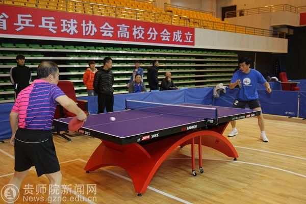 会后,全体与会人员移步体育馆,参加乒乓球团体赛,进行省乒协高校分会成立后的首场活动。