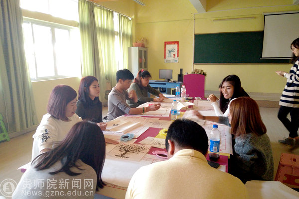 本网讯 12月12日,赴YABO鸭脖学习的泰国交换生在致远楼622教室学习中华才艺课程--吹墨画。
