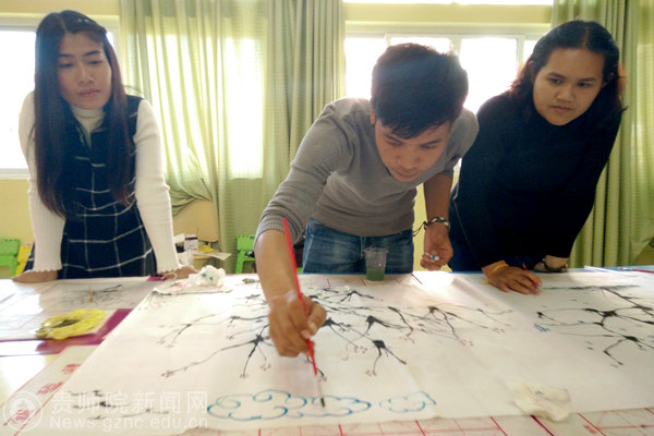 看到自己通过专心学习后完成的作品,泰国同学们的成就感油然而生,脸上洋溢着欣喜的笑容。这堂课为这一次的中国之行增添了收获。