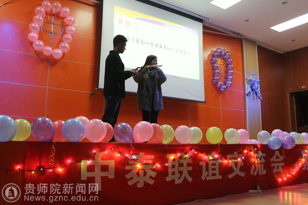 联谊晚会以节奏感强的开场舞拉开了晚会的序幕,晚会形式多样,包含中国传统乐器、动听的中泰歌曲、优美的舞蹈、幽默的英文话剧、中英文的朗诵和游戏互动。本次晚会的传统乐器表演是泰国学生来到中国以来首次听到由中国传统乐器演奏的歌曲表演,让泰国学子拓宽了视野。除了笛子独奏之外,中国同学身穿少数民族服装的话剧表演也抓住了泰国同学的眼球。