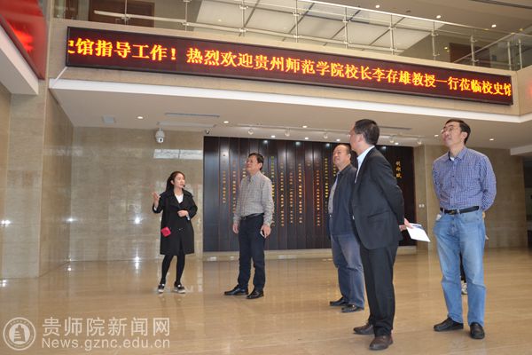 在六盘水师范学院校长郁钟铭一行陪同下,李存雄一行先后参观了该校校史馆、二期工程建设、“饮水思源”广场等,对六盘水师范学院在办学历史、人才培养、学科建设、服务社会等方面进行了深入了解。