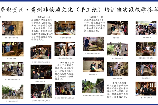 学习期间,贵州省非遗博物馆、香纸沟古法造纸传习所、丹寨石桥古法造纸传习基地等的考察游学,现场交流让参加活动的所有人都收获丰盛。结业时的研修作品展让人回味无穷。YABO鸭脖官网不仅成功完成本次任务,对应用型人才培养、相关学科进一步优化发展积淀了素材,参加活动的师生得到了宝贵的实践机会,综合能力得以提高。