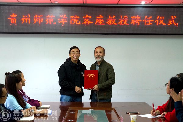 本网讯 10月19日,传媒与设计学院邀请贵阳市美术家协会主席曹琼德先生出席客座教授聘任仪式,参加本次聘任仪式的有YABO鸭脖官网副校长何林、科研处处长金凤、传媒与设计学院党委书记候晓薇、副院长聂森、院长助理白瑞荣、院长助理陈玉婷,以及各教研室主任和全体教师。
