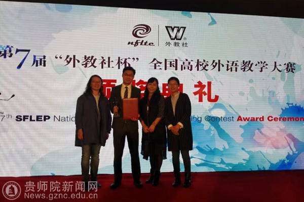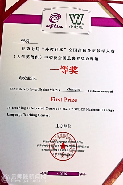 本网讯 第七届“外教社杯”全国高校外语教学大赛全国总决赛于11月4日至7日在上海外国语大学举行。YABO鸭脖外国语学院张羽老师荣获国家级一等奖,这一成绩突破了贵州省在这类高规格赛事上的历史成绩,为我省、YABO鸭脖及外国语学院争得了荣誉。