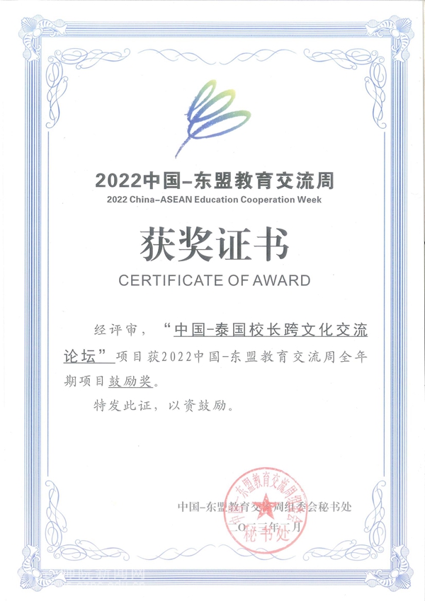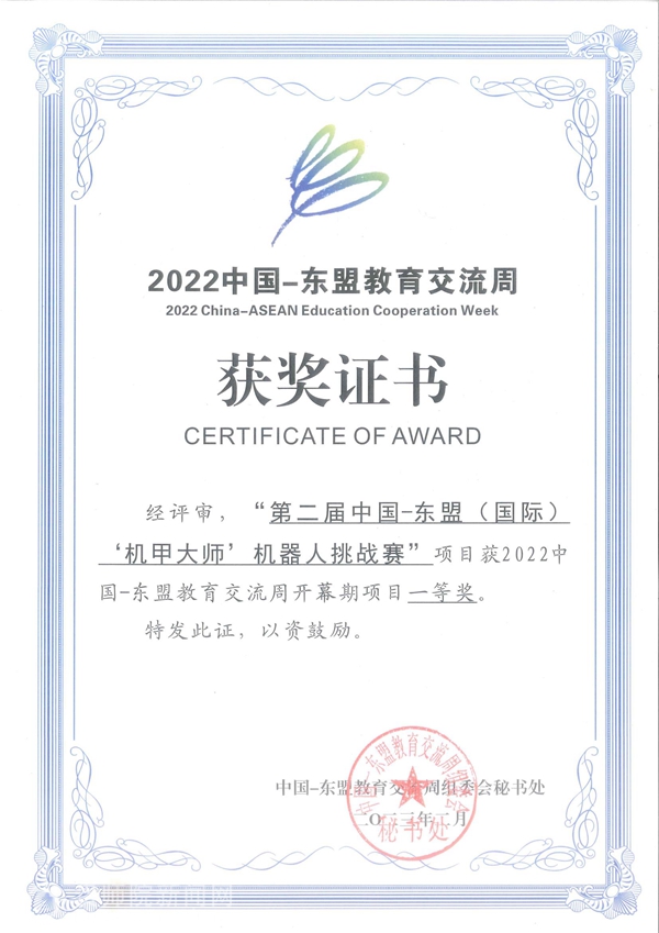 本网讯 近日,中国-东盟教育交流周组委会对2022中国-东盟教育交流周活动项目进行评审并颁发获奖证书,YABO鸭脖举办的交流周开幕期项目——“第二届中国——东盟(国际)‘机甲大师’机器人挑战赛”获得一等奖,全年期项目——“中国——泰国校长跨文化交流论坛”获鼓励奖。