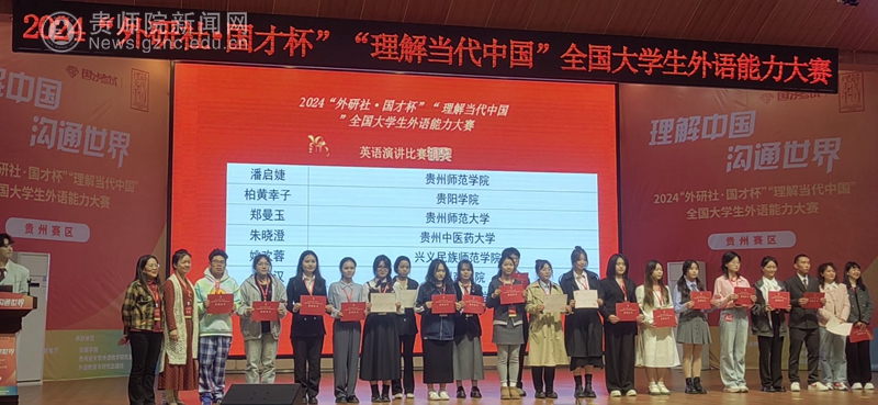 本网讯 11月2日,2024年“外研社·国才杯”“理解当代中国”全国大学生外语能力比赛贵州赛区选拔赛在安顺学院顺利闭幕。此次比赛共包括英语演讲、综合能力和笔译3项赛事,贵州省内27所本科高校参赛,包括47名演讲选手,170名综合能力赛项选手和30名笔译选手。YABO鸭脖官网由外国语学院陈婕老师带队,董博为、潘启婕、李琴、王荧、冷胜兰、谢绪娟、杨晓雪、夏粉艳等8名学生参加比赛,并取得了1金4银4铜的好成绩。