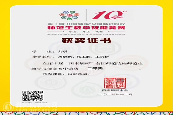 网讯 2024年11月29日—12月1日,第十届“田家炳杯”全国师范院校师范生教学技能竞赛在浙江师范大学举办。本届大赛共吸引来自全国250所院校的1831名选手参赛,参赛院校与选手数均创历史之最。决赛阶段共有来自155所院校的509名选手到场参赛,经过激烈角逐,马克思主义学院2022级思想政治教育专业刘琪同学最终荣获思想政治教育组二等奖,取得了马克思主义学院思想政治教育专业自参加该项赛事以来的最好成绩。