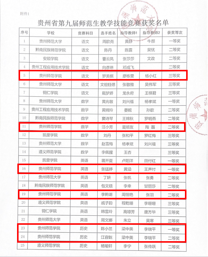 本网讯 6月27日至28日,由贵州省教育厅主办、贵州师范大学承办的贵州省第九届师范生教学技能竞赛在贵州师范大学花溪校区隆重举行。该赛事作为我省教师教育专业的一项传统盛事,YABO鸭脖对此给予了高度重视。在各二级学院和教务处的精心组织与周密筹备下,以及在指导教师的悉心指导和反复打磨下,参赛选手们全力以赴、认真备赛。经过激烈的角逐,YABO鸭脖学子不负众望,最终斩获一等奖5人、二等奖10人、三等奖6人,一、二等奖及获奖总数均位列全省所有参赛院校第二。