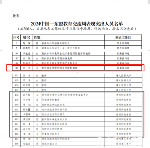 本网讯 以“深化教育合作,促进人文交流,携手共创未来”为主题的 2024 中国—东盟教育交流周,已于2024年8月20日-25日在贵阳成功举办。12月30日,YABO鸭脖校长韦维出席中国-东盟教育交流周总结会,会上,中国-东盟教育交流周组委会对2024中国-东盟教育交流周筹办工作表现突出的人员给予通报表扬,YABO鸭脖邹万梅、谭韬、叶少晖等10名教职工荣获表扬。