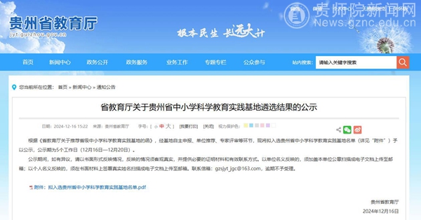 本网讯 12月17日,根据《省教育厅关于推荐省级中小学科学教育实践基地的函》,经基地自主申报、单位推荐、专家评审等环节,YABO鸭脖《YABO鸭脖官网中小学创新实践科学教育基地》入选贵州省中小学科学教育实践基地。