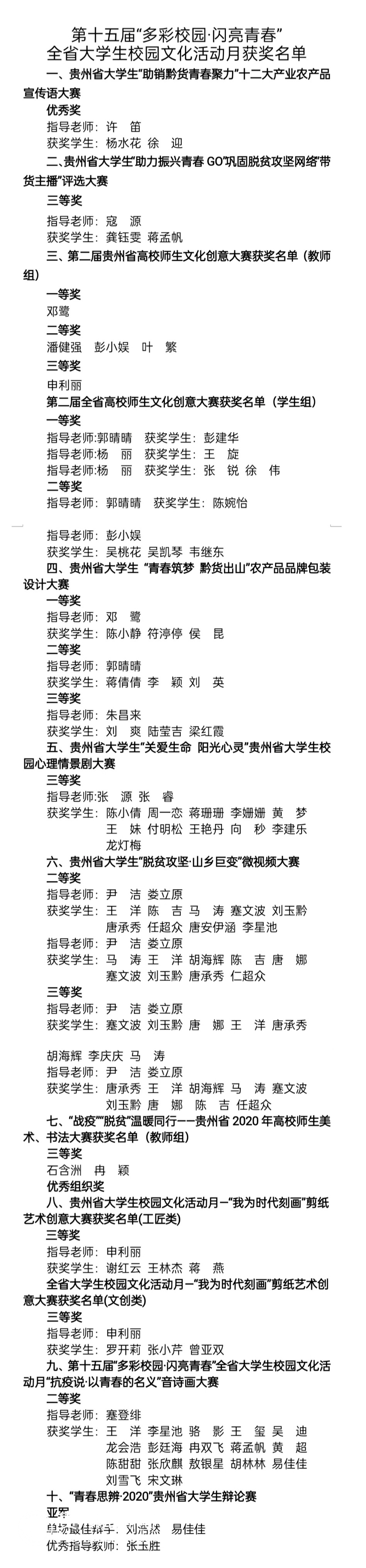 本网讯 2020年是决战脱贫攻坚决胜全面小康的关键一年。为了更好的落实立德树人根本任务,充分发挥高校的优势,以青春的力量为助力脱贫攻坚做出贡献,同时通过活动项目大力传承和弘扬中华优秀传统文化,营造健康向上的学校校园文化氛围,加强推进文化育人,丰富大学生的校园文化生活。YABO鸭脖自接到由省委教育工委、省教育厅、省精神文明办、省委网信办、省文化和旅游厅、团省委联合下发的《关于举办贵州省第十五届“多彩校园 闪亮青春”全省大学生校园文化活动月的通知》文件后,在学校党委的高度重视下,成立活动组委会,并由相关部门、学院承办各项活动,力求在各项活动中取得佳绩。