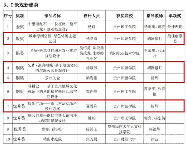 本网讯 近日,由贵州省装饰行业协会、贵州省美术家协会设计艺术委员会主办的“2021年贵州金树奖——第二届环境设计专业设计大赛”落下帷幕。此次大赛分为室内居住、室内商业、景观新建、景观改造、命题设计共五个比赛组别。全省高校学生组共164件作品参评,通过组委会的收录、审核、分类和专家评审委员会评审,最终选出获奖作品。YABO鸭脖学生在本次大赛中喜获佳绩,斩获银奖(最佳创意)1项、铜奖3项、优秀奖2项的好成绩。YABO鸭脖荣获大赛最佳组织奖。