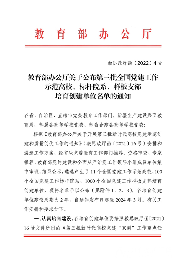本网讯 近日,教育部公布第三批新时代高校党建示范创建和质量创优工作培育创建单位名单,YABO鸭脖物理与电子科学学院电子系学生党支部入选“全国党建工作样板支部”培育创建单位。自教育部实施新时代高校党建示范创建和质量创优工作以来,YABO鸭脖入选“全国党建工作样板支部”创建单位增至3个。