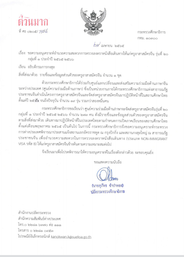 泰国教育部邀请函件