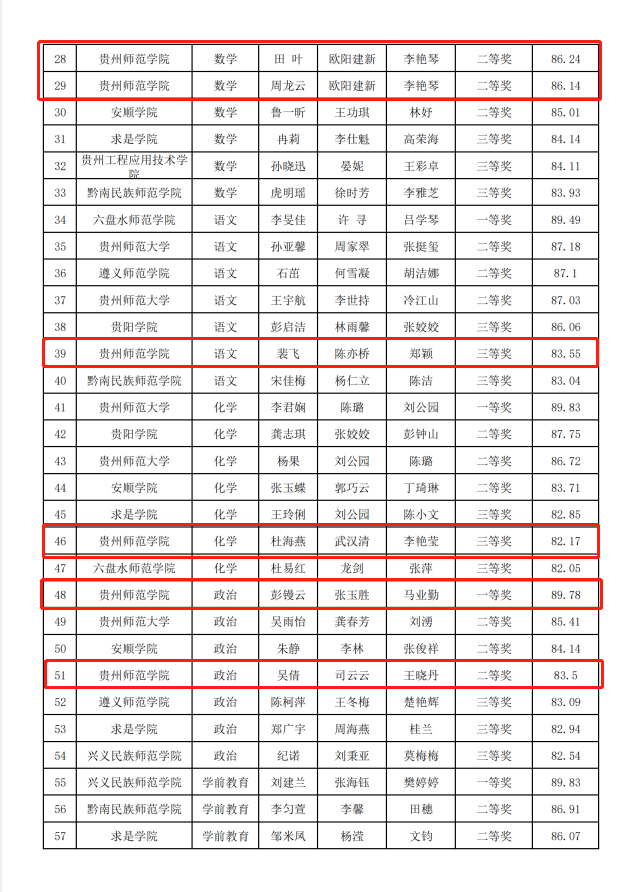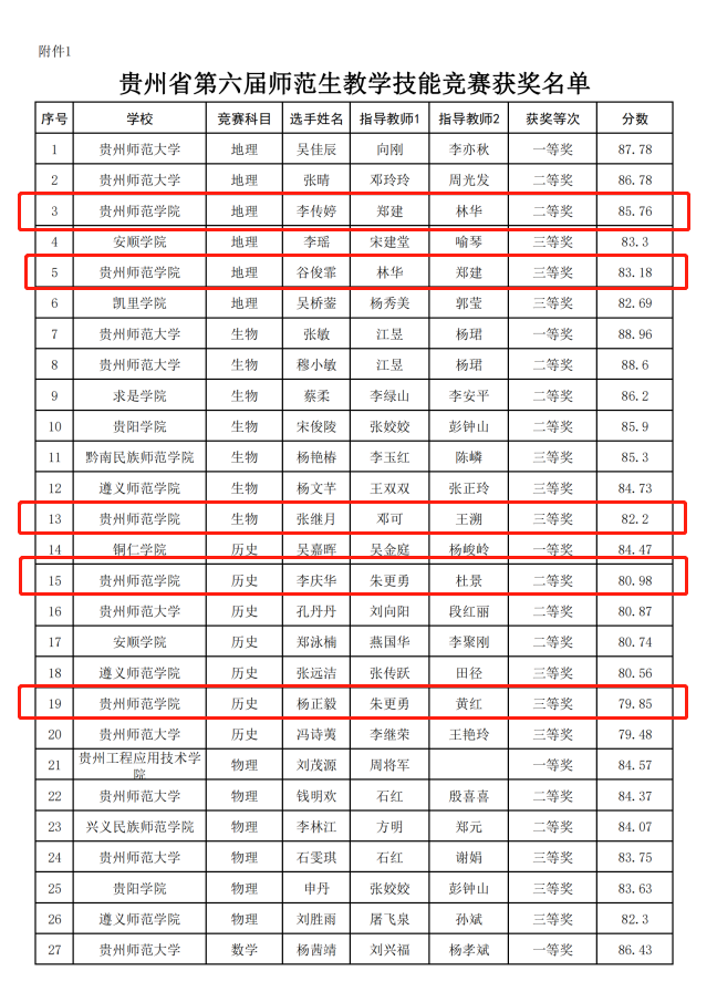 7月14-15日,由贵州省教育厅主办、贵州师范大学承办的贵州省第六届师范生教学技能竞赛在贵州师范大学花溪校区举行。YABO鸭脖学子不负众望,最终获得一等奖2项,二等奖6项,三等奖8项,一、二等奖和获奖总数均位列全省所有参赛院校第二。