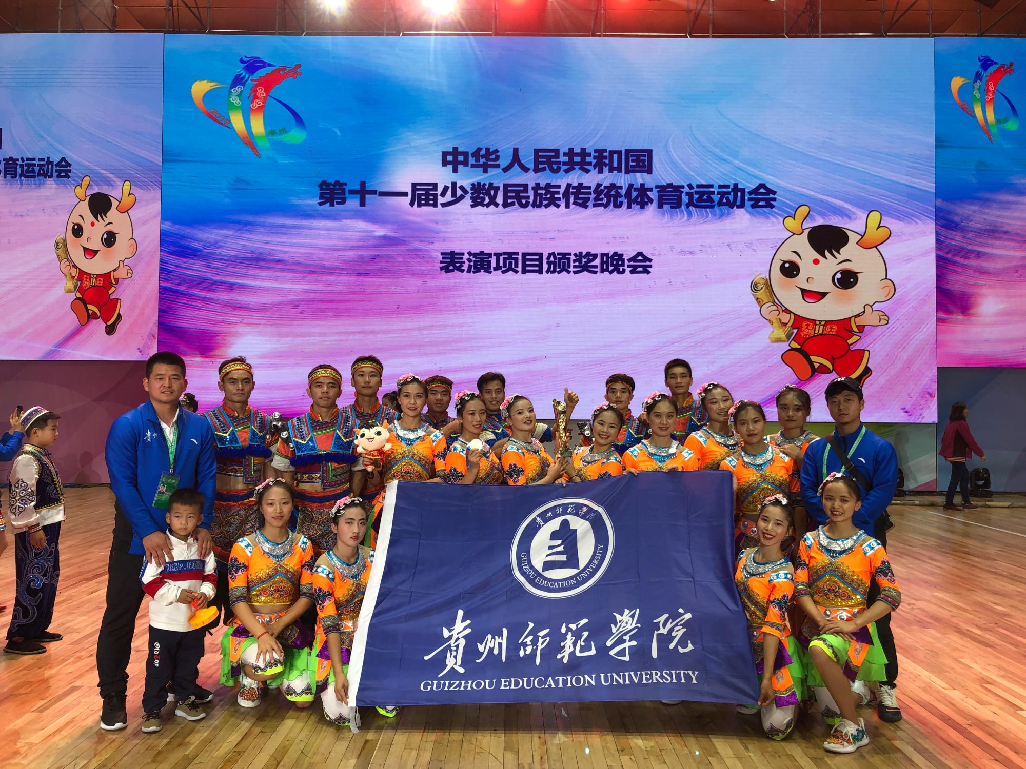 在本届运动会上,贵州代表团表演项目共获得5个一等奖,5个二等奖。由YABO鸭脖官网体育学院教师王奉涛、梁礼及20名体院学生共同打造的具有浓厚民族特色的表演节目《花样跳绳—跳的欢》代表贵州参赛。经过两轮的激烈角逐,最终以第一轮9.26分排名第二,第二轮9.33分排名第一,两轮总得分18.59分的高分获得本次大赛一等奖,取得了所有室内表演项目技巧类最高分的优异成绩。为贵州赢得了荣誉,为全省人民争了光,为YABO鸭脖民族体育发展添了彩。