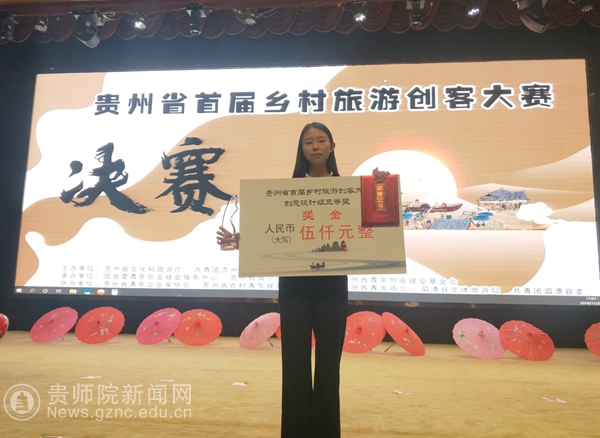本网讯 近日,由省文化和旅游厅、共青团贵州省委主办的“贵州省首届乡村旅游创客大赛”总决赛在湄潭县举行。省文化和旅游厅厅长张玉广、团省委书记涂妍出席大赛并为获奖选手颁奖。YABO鸭脖美术与设计学院汪力老师指导的17级产品专业学生龙继雪在此次比赛中荣获三等奖。