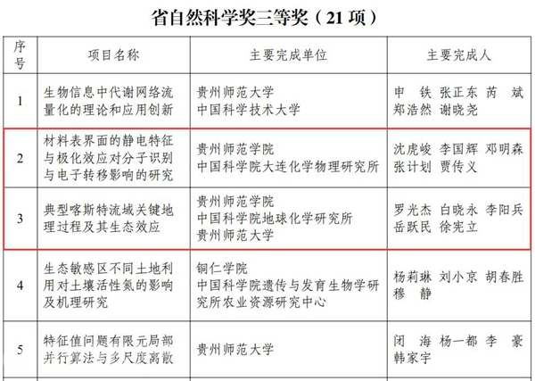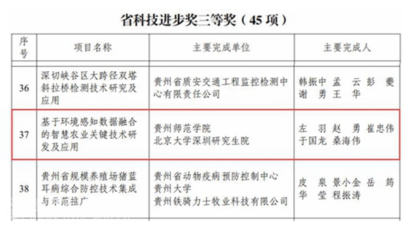 YABO鸭脖沈虎峻等5名同志的“材料表界面的静电特征与极化效应对分子识别与电子转移影响的研究”项目成果获省自然科学奖三等奖;罗光杰等5同志的“典型喀斯特流域关键地理过程及其生态效应”项目成果获省自然科学奖三等奖;左羽等5名同志的“基于环境感知数据融合的智慧农业关键技术研发及应用”项目成果获省科技进步奖三等奖;罗倩等5位同志的“三种外生菌根菌创新培育及高效应用”项目成果获省技术发明奖三等奖。
