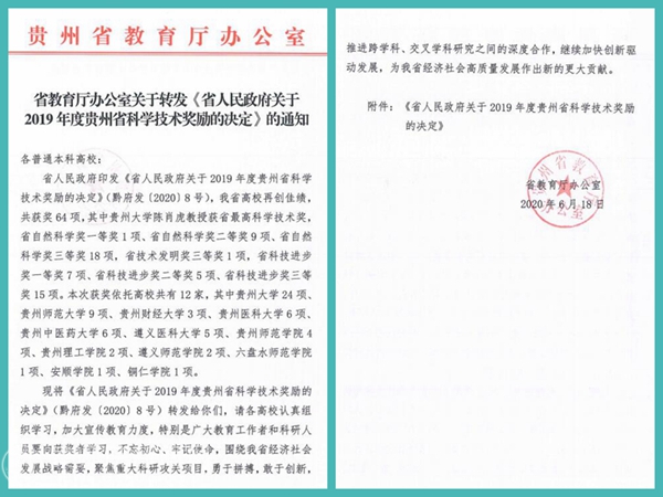 2019年度贵州省科学技术奖励通知