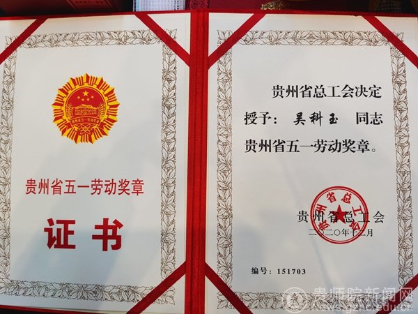 本网讯 12月22日,贵州省教育工会召开了“贯彻全会精神 大力弘扬劳模精神劳动精神工匠精神”专题会议在贵州省总工会大院顺利举行。YABO鸭脖文学与传媒学院吴科玉老师荣获省五一劳动奖章。