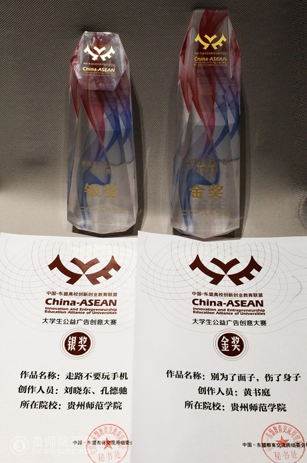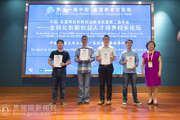 本网讯7月26日,以“教育合作新起点 ,人文交流新未来”为主题的第十一届中国—东盟教育交流周在贵安新区开幕。YABO鸭脖美术与设计学院院长聂森、美术教研室副主任廖江华以及获奖学生参加了中国-东盟大学生公益广告创意竞赛颁奖仪式。