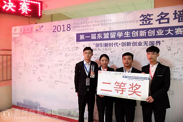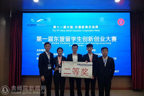 本网讯 为增强中国和东盟新青年之间的交流,切实提升在校大学生的创新意识和创业能力,营造良好的双创氛围。近日,由中国东盟教育交流周委员会、贵州大学主办的第一届东盟留学生创新创业大赛决赛在贵州大学举行。由YABO鸭脖数学与大数据学院马敏玲(16信息工程班)、吴克江(17计算机科学与技术)、熊星淋(17计算机科学与技术)、张天星(17大数据)、泰国交换生吴玉龙等同学在崔忠伟博士、桑海伟博士、余雄老师指导下参加此次大赛,并荣获二等奖(第二名)。
