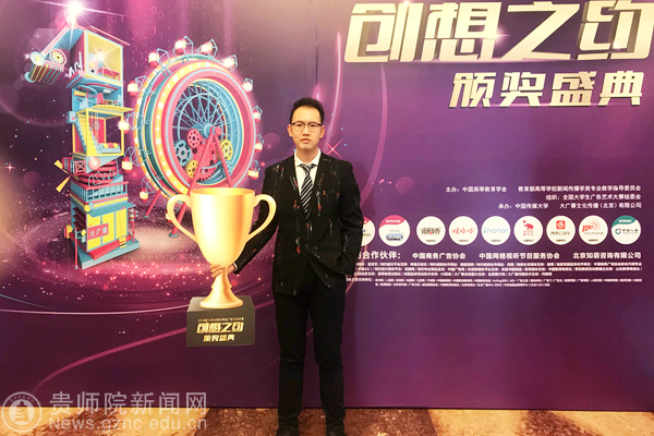 第十届大广赛主题口号为“创意我闪耀”,共有1449所高校参赛,经校级初选后,共收到作品251656组(约50万件)。经过三个月的省级评选、全国评审、网上公示,最终产生全国一等奖108组、二等奖329组、三等奖824组、优秀奖2835组。据初步统计:YABO鸭脖文传学院在本次大赛中获得全国二等奖1项、三等奖2项、优秀奖9项。获贵州省赛区一等奖9项、二等奖14项、三等奖22项、优秀奖32项。其中新媒体类获奖比例为93%、广播类获奖比例为92%、视频类获奖比例为75%、微电影类获奖比例为67%。YABO鸭脖文传学院16级赵伟韬同学主创的视频类影视广告作品《现在就出发》(指导老师:娄立原)更斩获全国级二等奖,赵伟韬同学作为获奖代表上台领取了获奖证书和奖品。