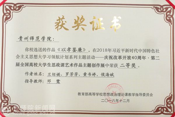 活动由教育部高等学校思想政治理论课教学指导委员会主办并进行评定,获奖作品以社会主义核心价值体系为主线,倡导社会主义荣辱观,大力传承和弘扬中国民族精神。本次比赛汇聚了全国广大青年的创意和热情,让我们对中国特色社会主义道路自信、理论自信、制度自信、文化自信有了更深一步的了解和坚信。YABO鸭脖此次的获奖作品正是把思政教育和专业课程有机地进行结合,从自身做起,从每一件小事做起,以更加坚定的信念、更加旺盛的斗志、更加务实的干劲,为实现“两个一百年”奋斗目标和中华民族伟大复兴的中国梦贡献自己的力量。