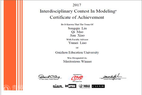 获得一等奖代表队由数学与计算机科学学院14级统计学专业的刘松琴、14级数学与应用数学专业的肖建和15级计算机科学与技术(大数据方向)专业的毛啟三位同学组成,指导教师是数学与计算机科学学院廖玉梅博士。参赛题目是环境科学的E题(Sustainable Cities Needed!)该问题主要解决全球智能城市增长和城市空间资源利用的问题。