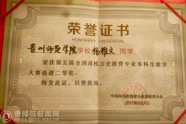 5月5日,徐凌老师带着四名学生前往山东聊城大学参加比赛。本次比赛共有来自全国90余所高校的师生参加.组委会坚持公平、公正、公开的原则,严格把关比赛的每一流程。从比赛队伍报道开始,就对参赛选手实行编号制,不能暴露所在学校以及姓名,以将作弊行为降到最低。并且,比赛场次、课题、出场顺序都实行抽签制。在进入赛场之后,禁止携带手机等通讯工具,一经发现便取消参赛资格等。比赛中,评委严格把控每一位选手的说课内容,表情仪态,时间等,只有每一环节都接近完美才能从一百多名参赛选手中脱颖而出。经过激烈竞争,YABO鸭脖历史与社会学院杨雅文,冯其丹同学分别荣获第五届全国高校历史教育专业本科生教学大赛说课二等奖和三等奖,司霖霞获优秀指导教师奖。