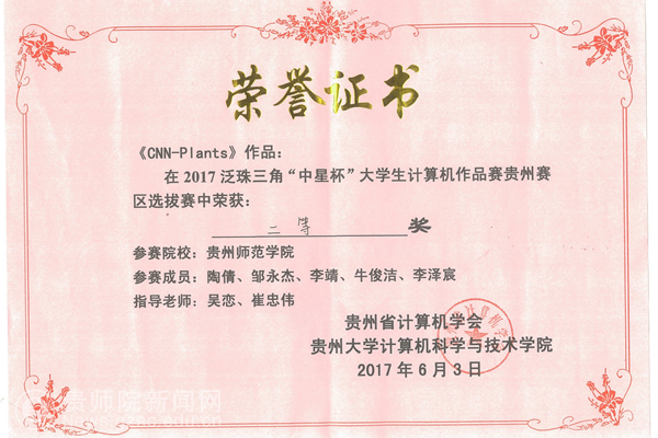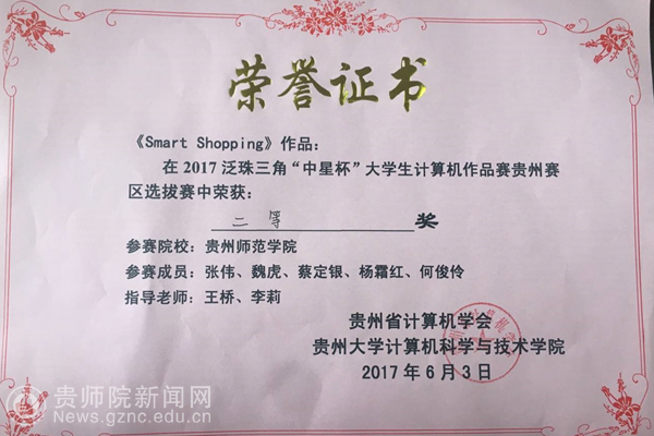 最终,YABO鸭脖五支参赛队伍,分别获得省二等奖两项、三等奖一项、最佳答辩奖和优秀奖两项。其中,作品“CNN-Plants”(学生:陶倩、邹永杰、李靖、牛俊杰、李泽宸,指导教师:吴恋)、“Smart Shopping”(学生:张伟、魏虎、蔡定银、杨霜红、何俊伶,指导教师:王桥、李莉)获得省二等奖,作品“云计算背景下基于反向代理的数据中心公网IP复用解决方案——反代主机管理系统”(学生:廖俊林、杨建华,指导教师:林宏)获得省三等奖,作品“智能居家监控预警系统”(学生:赵兵、夏园园、肖婷、饶钦,指导教师:吴恋、桑海伟、赵建川)获得最佳答辩奖和优秀奖,作品“面向精准扶贫对象的署类储藏监控系统”(学生:卞鲜鑫、罗锐、陈海、高望,指导教师:赵建川、桑海伟、吴恋)获得优秀奖。