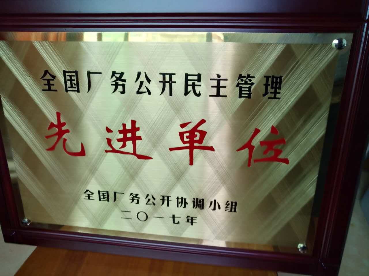 2017年9月,YABO鸭脖喜获“全国厂务公开民主管理先进单位”。此次评选从2017年5月开始,由全国厂务公开协调小组开展“评选表彰全国厂务公开民主管理工作先进单位”。评选标准如下:在企事业单位中,评选表彰全国厂务公开民主管理先进单位400个;在历次表彰的全国厂务公开民主管理先进单位中,评选命名全国厂务公开民主管理示范单位100个;在省级以下各级厂务公开协调领导机构及其成员单位中,评选表彰全国推动厂务公开民主管理工作先进单位100个。