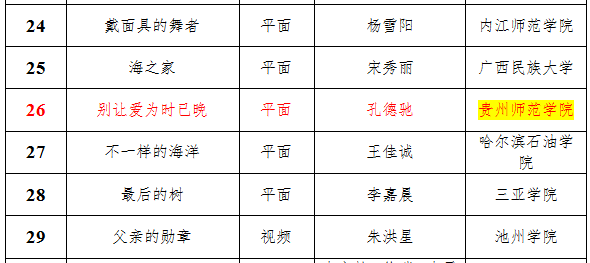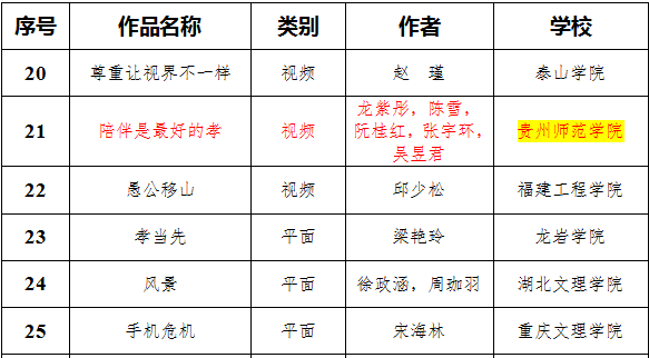 第二届全国大学生网络文化节公益广告作品获奖名单