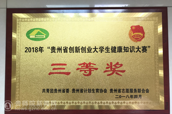 本网讯 4月22日,由共青团贵州省委、贵州省计划生育协会、贵州省志愿服务联合会联合主办,贵州省志愿者行动指导中心、贵州省青年创业就业服务中心、贵州医科大学团委联合承办的2018年贵州省创新创业大学生健康知识大赛决赛在贵州医科大学举行。YABO鸭脖教育科学学院15级学前教育班李泽婷、教育科学学院16级应用心理学班孟应敏、经济与政治学院16级经济学1班赵江胤、化学与生命科学学院学院16级应用化学1班敖琪四位同学作为YABO鸭脖官网代表队参与此次大赛。在比赛中,经过紧张有序的必答、抢答和风险题三个阶段的激烈角逐,一路披荆斩棘,YABO鸭脖代表队最终荣获三等奖。