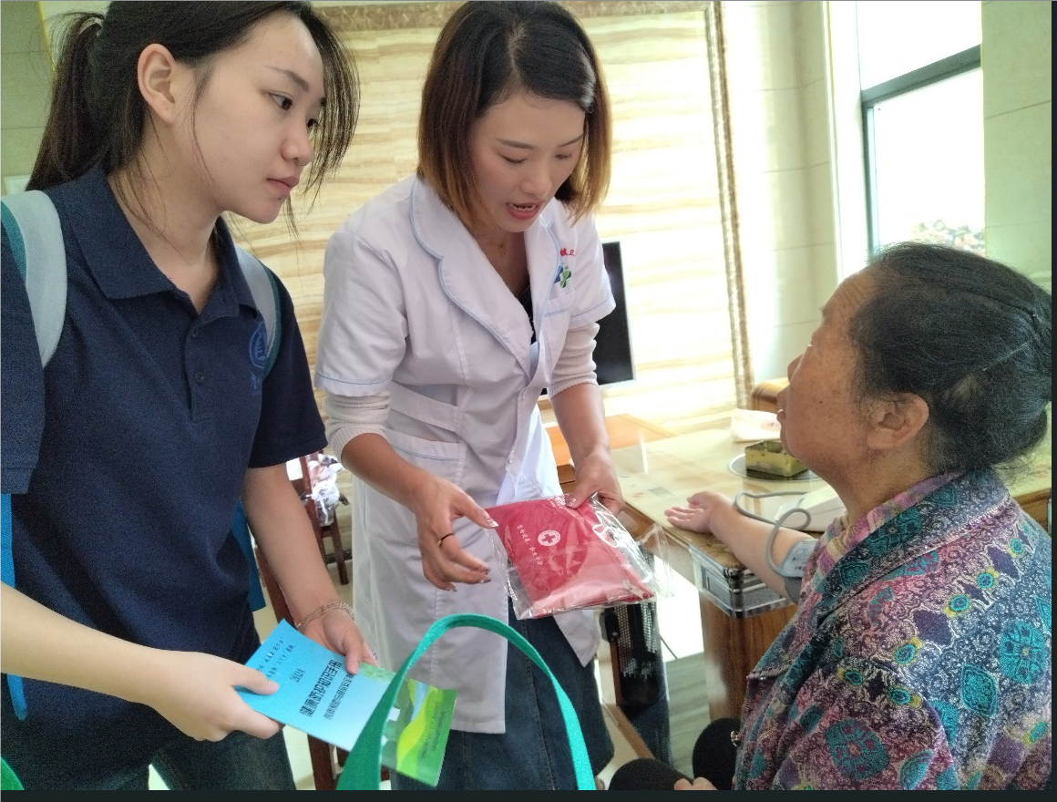 宣讲结束后,服务队成员积极协助专家组医生,组织开展义诊活动,免费向村民们测血压量血糖并提供医疗咨询,践行国家基本公共卫生服务,全面做到“医防融合,为健康保驾护航”。针对当地村民高度关注的健康问题,志愿者发放了精心制作的宣传手册,包括老年人基础疾病认知、常见突发疾病及初步处理和食品安全防控等科普知识,并发放百余份家庭医疗急救包。活动尾声,服务队成员和专家组通过实地走访入户的方式,深入了解当地村民生活环境和整体卫生健康状况,向不便出行的老年人送上国家基本公共卫生服务。