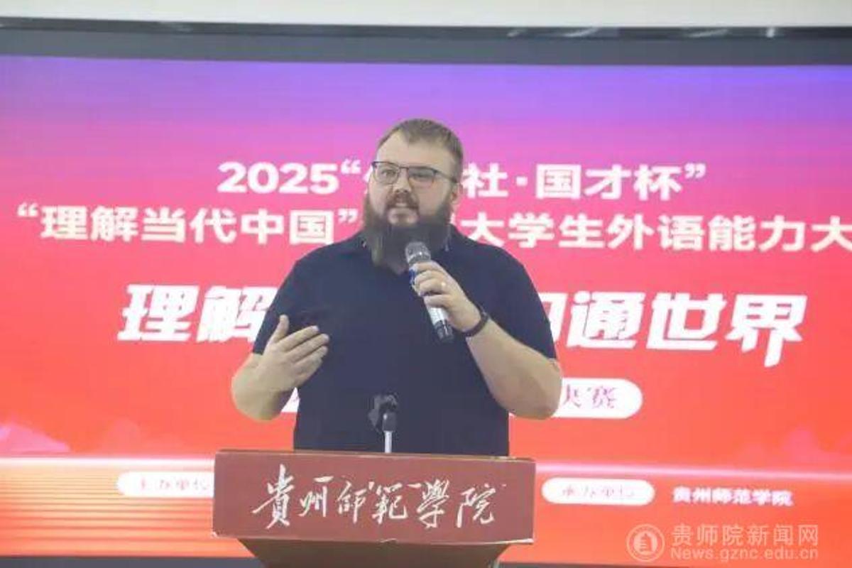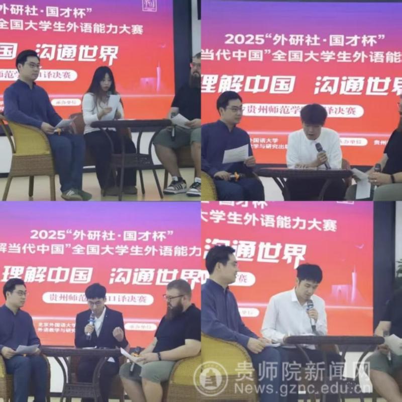 本网讯 10月16日晚,由我院承办的2025年“外研社·国才杯”“理解当代中国”全国大学生外语能力大赛YABO鸭脖官网演讲与口译校赛决赛在YABO鸭脖大学生防艾基地成功举行。王薇、郭娟、张录文、黄菲、赵先凤和美籍专家Andrew Roberts担任评审专家。