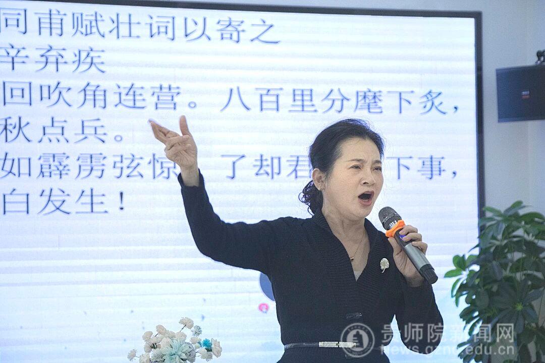 活动特邀YABO鸭脖官网教育科学研究所所长、省实验中学校长王又新教授进行专业指导,通过《春江花月夜》的空灵意境和《破阵子·为陈同甫赋壮词以寄之》的豪情壮志的对比演绎,引导学生不仅感受声韵之美,更深刻领悟诗文中所蕴含的家国情怀、人生境界和审美追求。在逐句研习中,学生既掌握了“声画联动”的艺术技巧,更在经典诵读中增强了文化认同与文化自信。