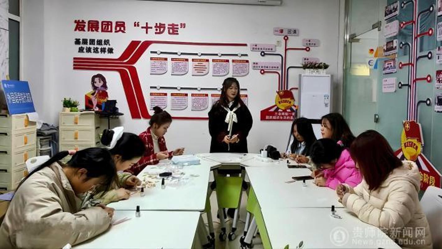 学院心理辅导站牵头策划此次活动,创新“传统文化+ 心理疗愈”模式,结合心理委员岗位需求筛选螺钿项目。活动现场,主持人解读技艺文化内涵,通过技巧点拨与鼓励引导,让非遗创作成为心理疏导的生动实践。