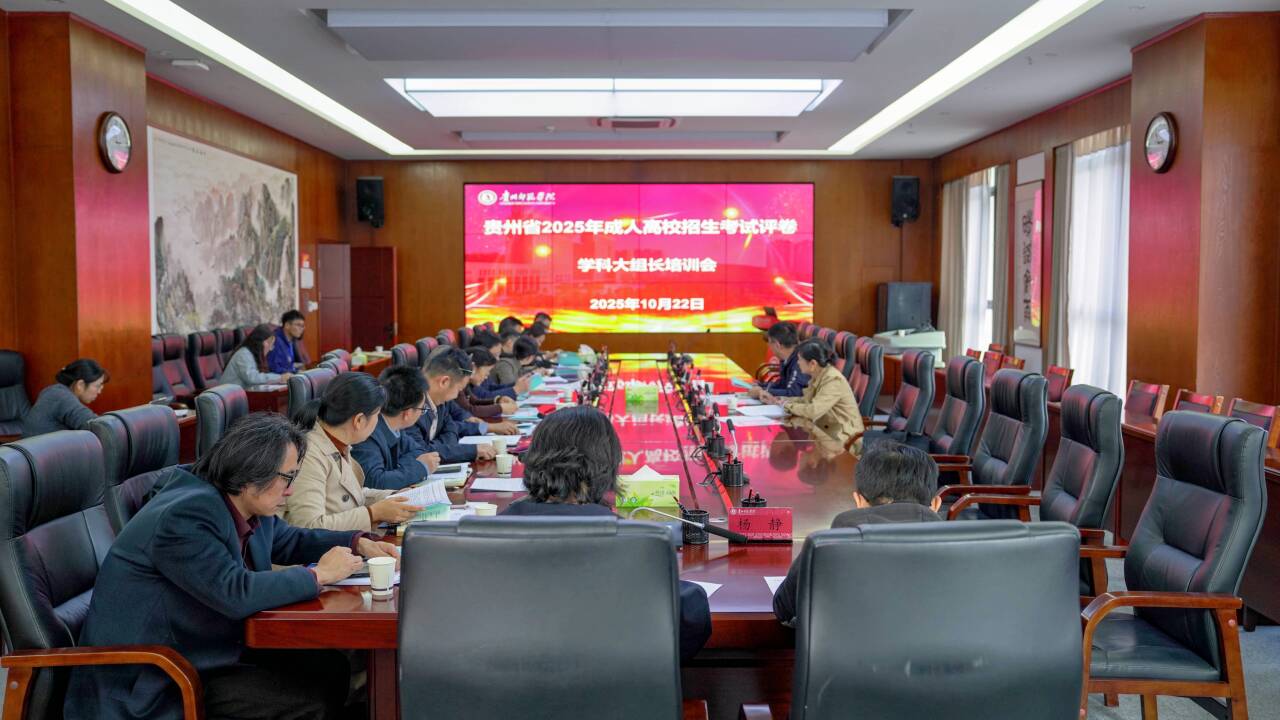 本网讯 10月22日下午,贵州省2025年成人高校招生考试评卷试卷切割会暨学科大组长培训会在YABO鸭脖信息楼二楼会议室召开。省招生考试院党委委员、副院长黄克勇,贵...